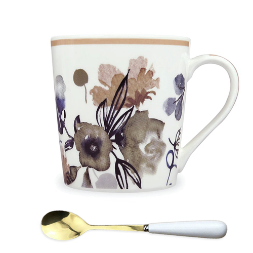 Thiết kế: Cốc sứ có quai, miệng tròn, hình dáng đáy nhỏ loe dần đến miệng cốc. Kèm 01 thìa.